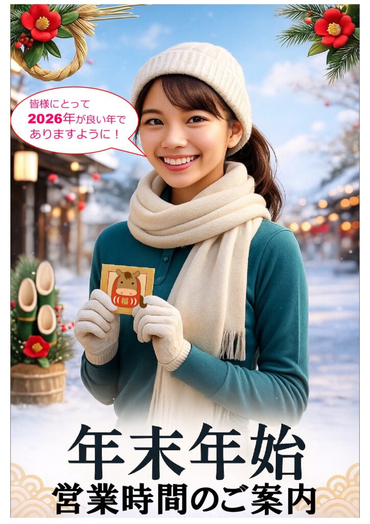 20251229日(月)~20261(日)は休日扱いとさせていただきます。