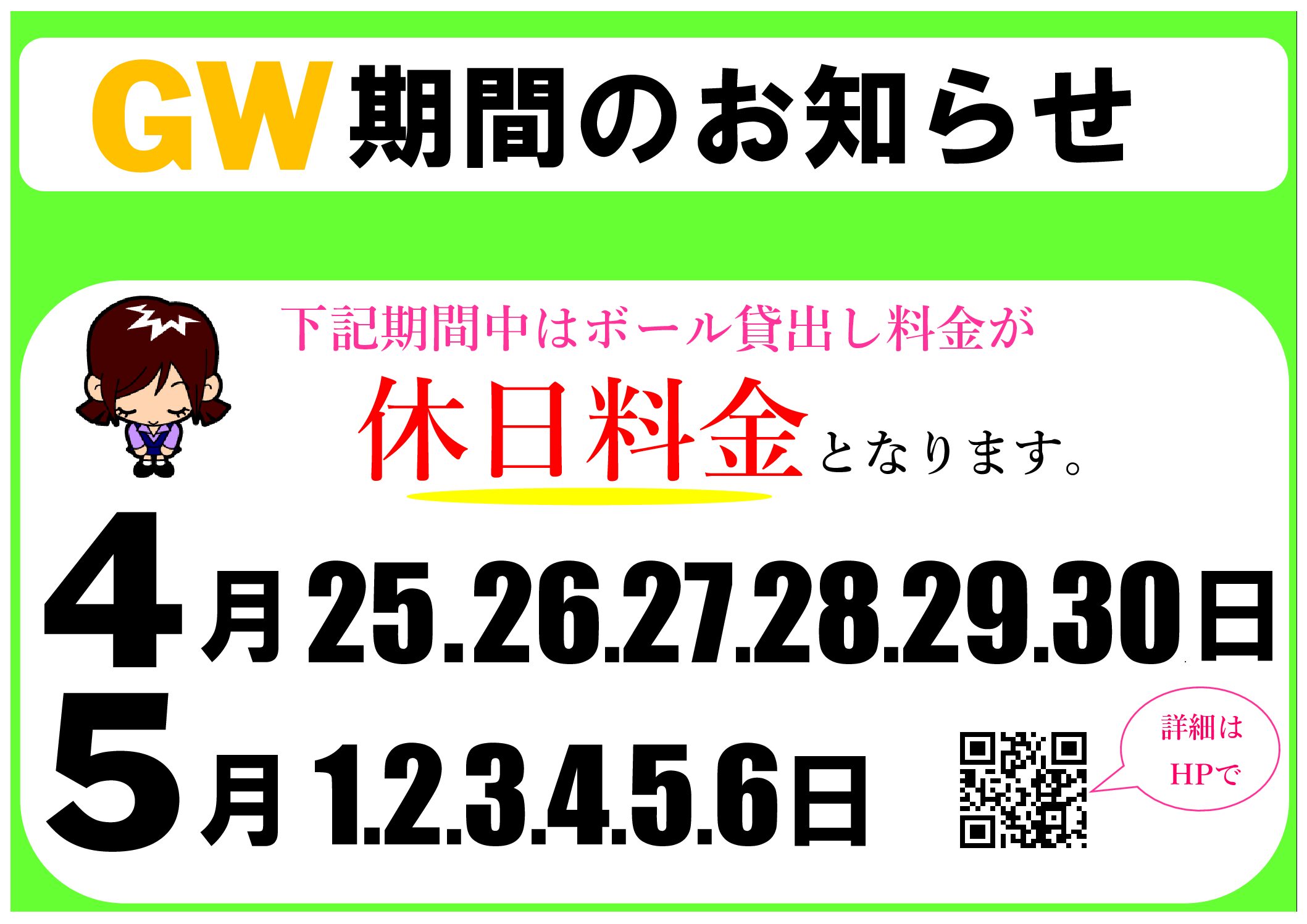《GW期間ボール貸出料金》